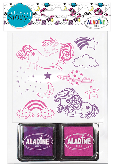 Check out the best stories of your children with our Stampo Story! A kit of 10 pads on the theme of unicorn. The child stamps and imagines his own stories. Playful and convenient, the kit is supplied with 2 colorful ink pads. 3 others theme available.