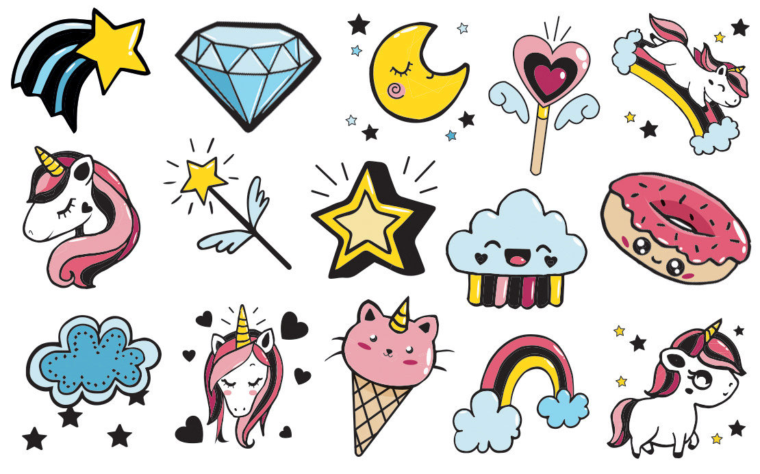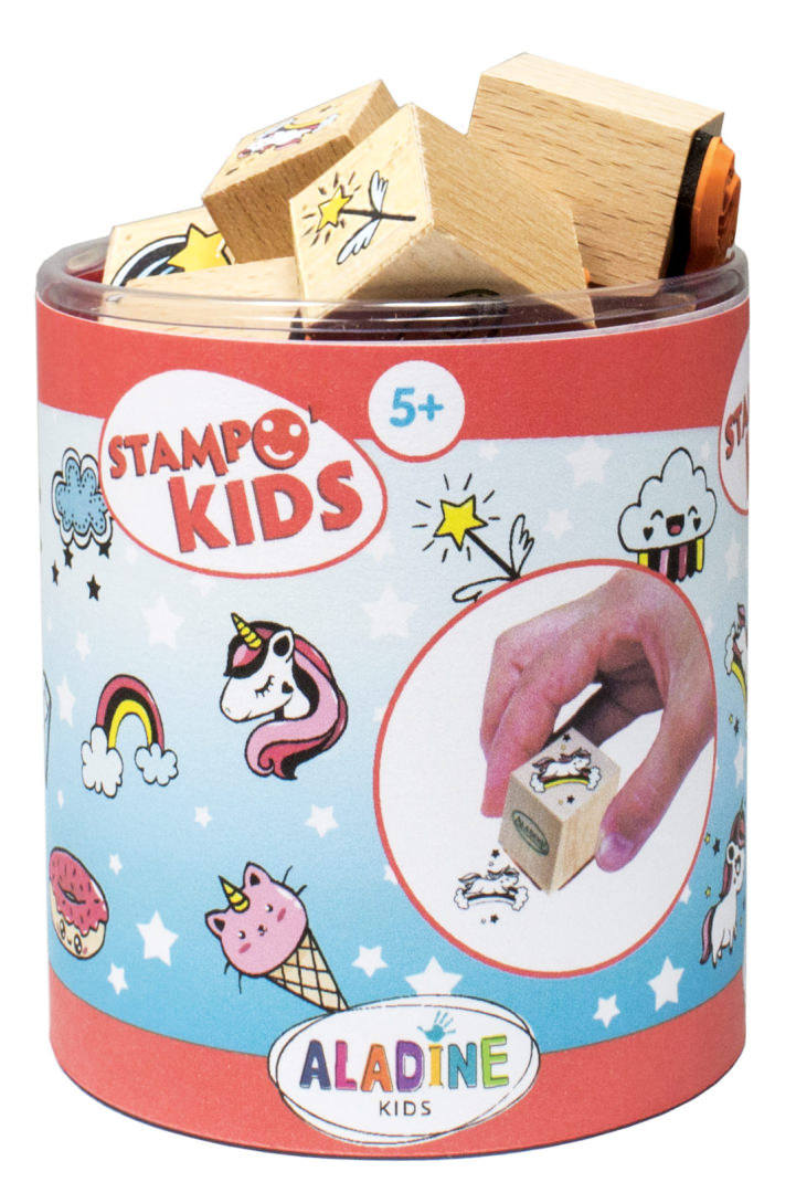 Stamp people, animals and create a story. Box of 15 kids’ stamps with 1 black ink pad included in each box.