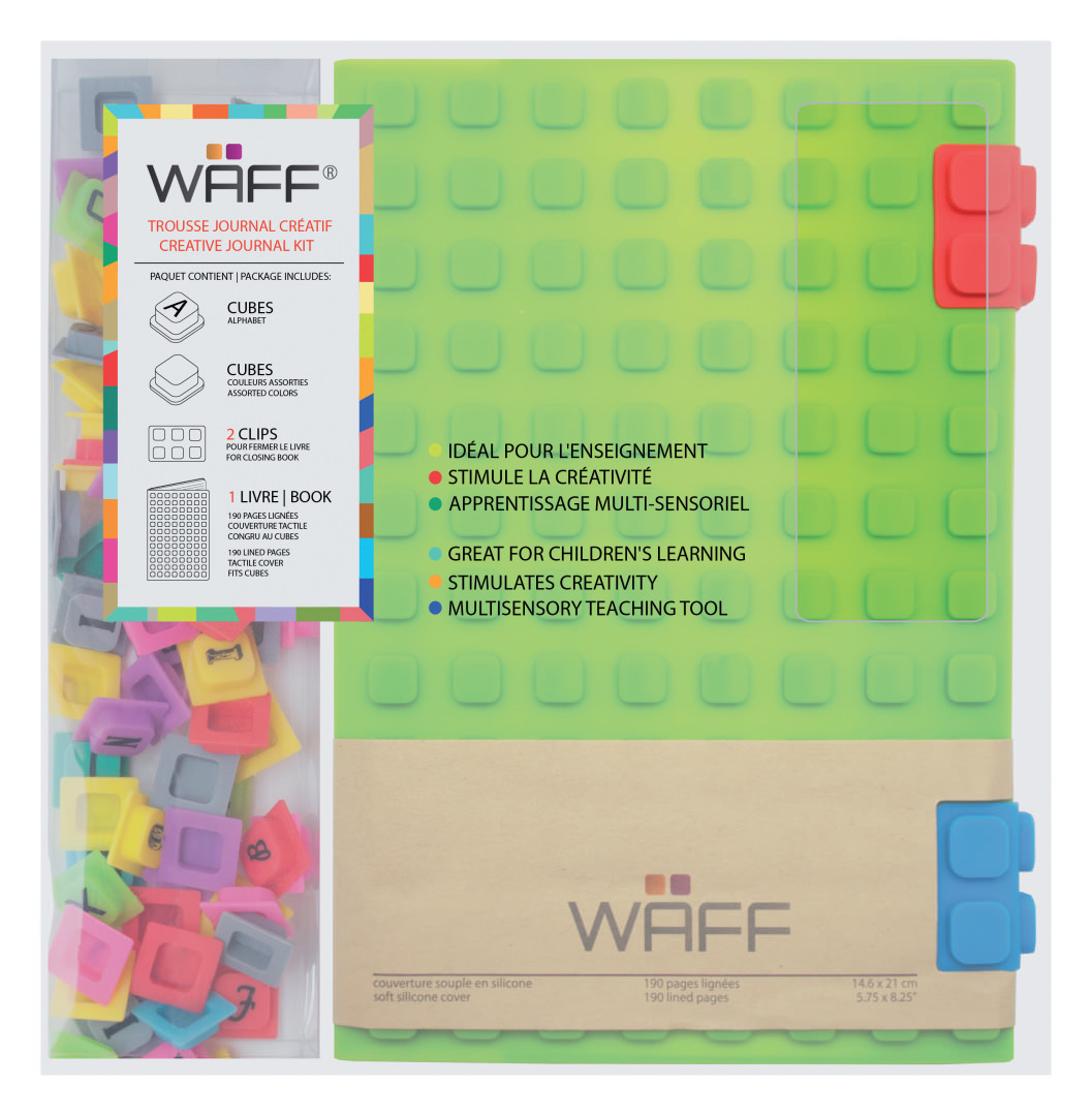 Creative journal. Ideal for encouraging creativity. Soft cover that can be personalized with WAFF patterns and letter cubes. Ideal for teaching and multi-sensory learning