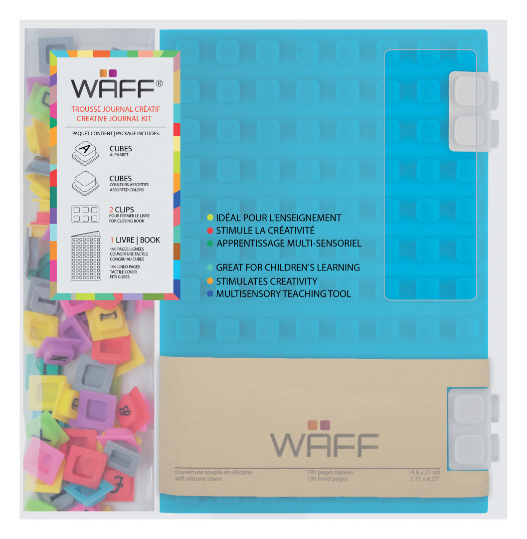Creative journal. Ideal for encouraging creativity. Soft cover that can be personalized with WAFF patterns and letter cubes. Ideal for teaching and multi-sensory learning