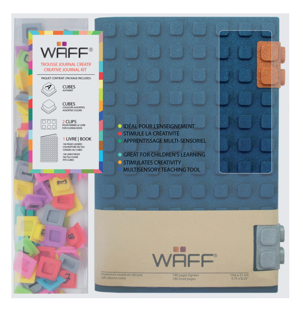 Creative journal. Ideal for encouraging creativity. Soft cover that can be personalized with WAFF patterns and letter cubes. Ideal for teaching and multi-sensory learning