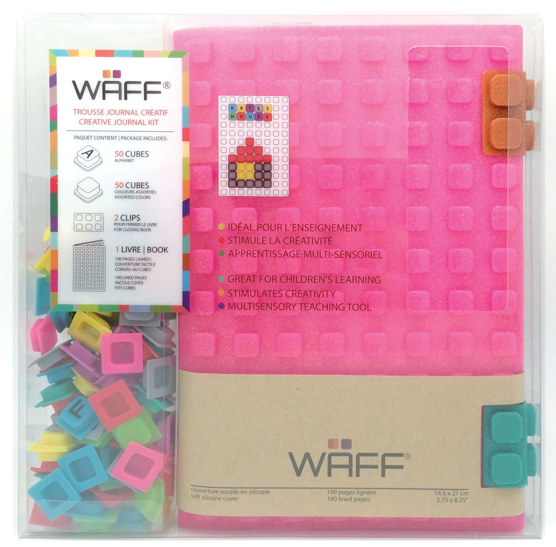 Creative journal. Ideal for encouraging creativity. Soft cover that can be personalized with WAFF patterns and letter cubes. Ideal for teaching and multi-sensory learning
