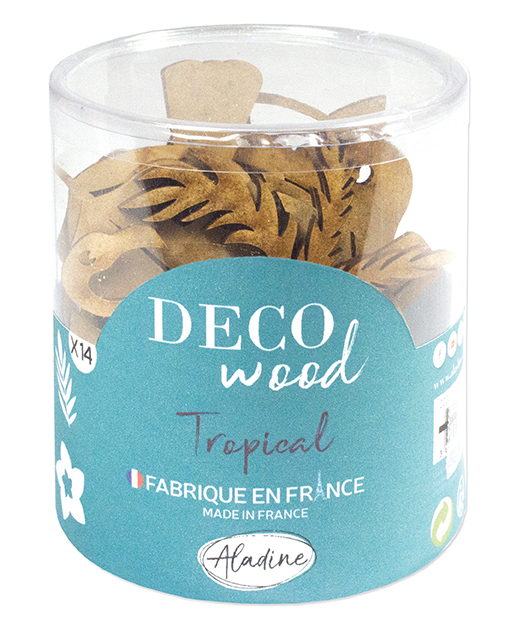 Accessoires en bois à personnaliser avec de la peinture, des feutres, de l’encre, etc. Parfait pour décorer vos tables, pots de fleurs, vos portes clefs et bien d’autres objets. 8 motifs sur le thème Tropical en double exemplaires chacun.