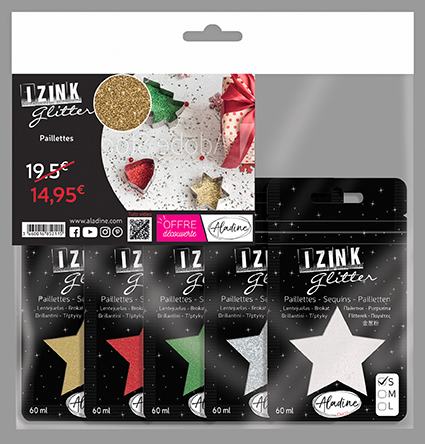 5 gourdes d'Izink Glitter aux couleurs de Noël : Rouge, Vert, Or, Nacré et Argent