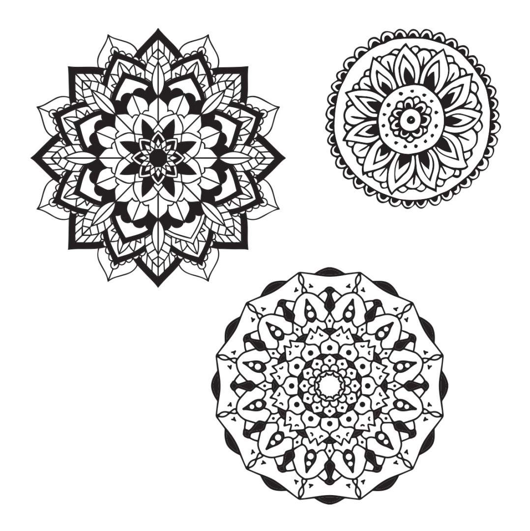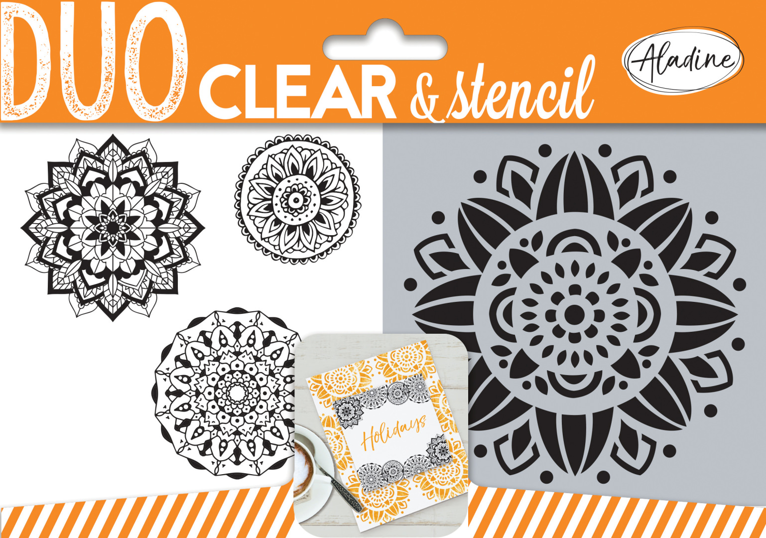 Découvrez ce set de tampons et pochoir pour réaliser vos fonds et vos motifs. Très simple d'utilisation et facilement lavable à l'eau. Ce lot contient 3 stampo Clear et 1 pochoir aux motifs inspirés des mandalas