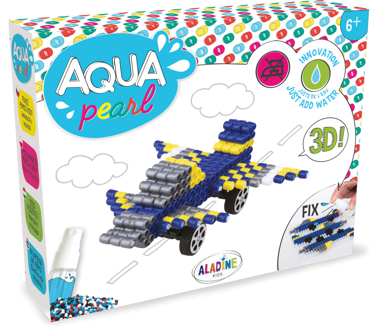 Coffret en perles pour créer son avion en 3D. Fixation à l'eau avec spray.